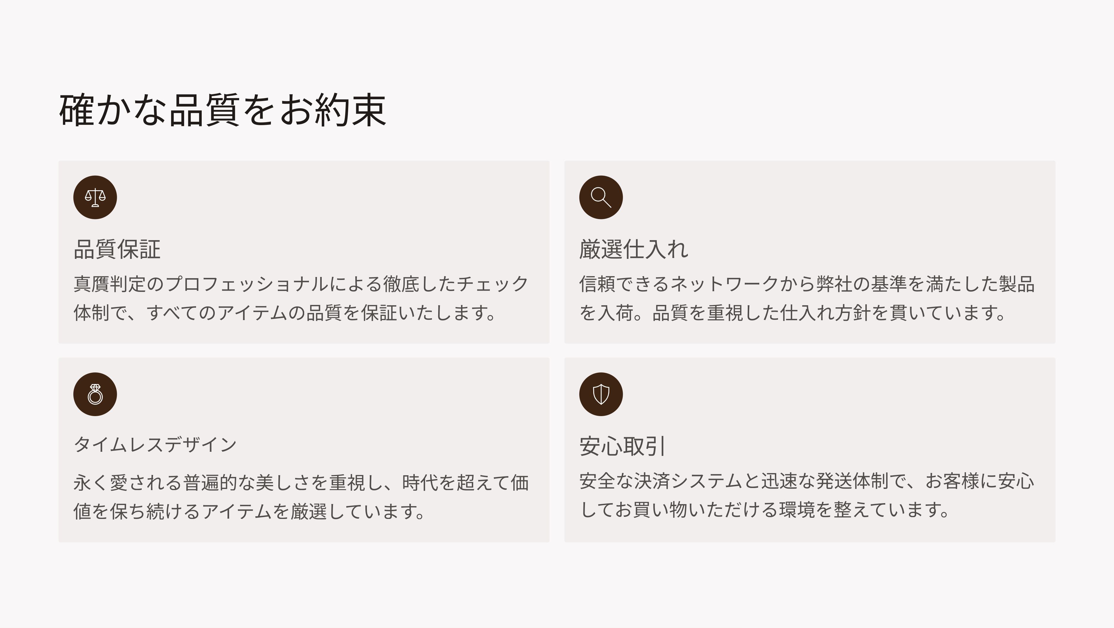 商品は専門の鑑定士がひとつひとつ丁寧にチェックし、真贋を保証しております。