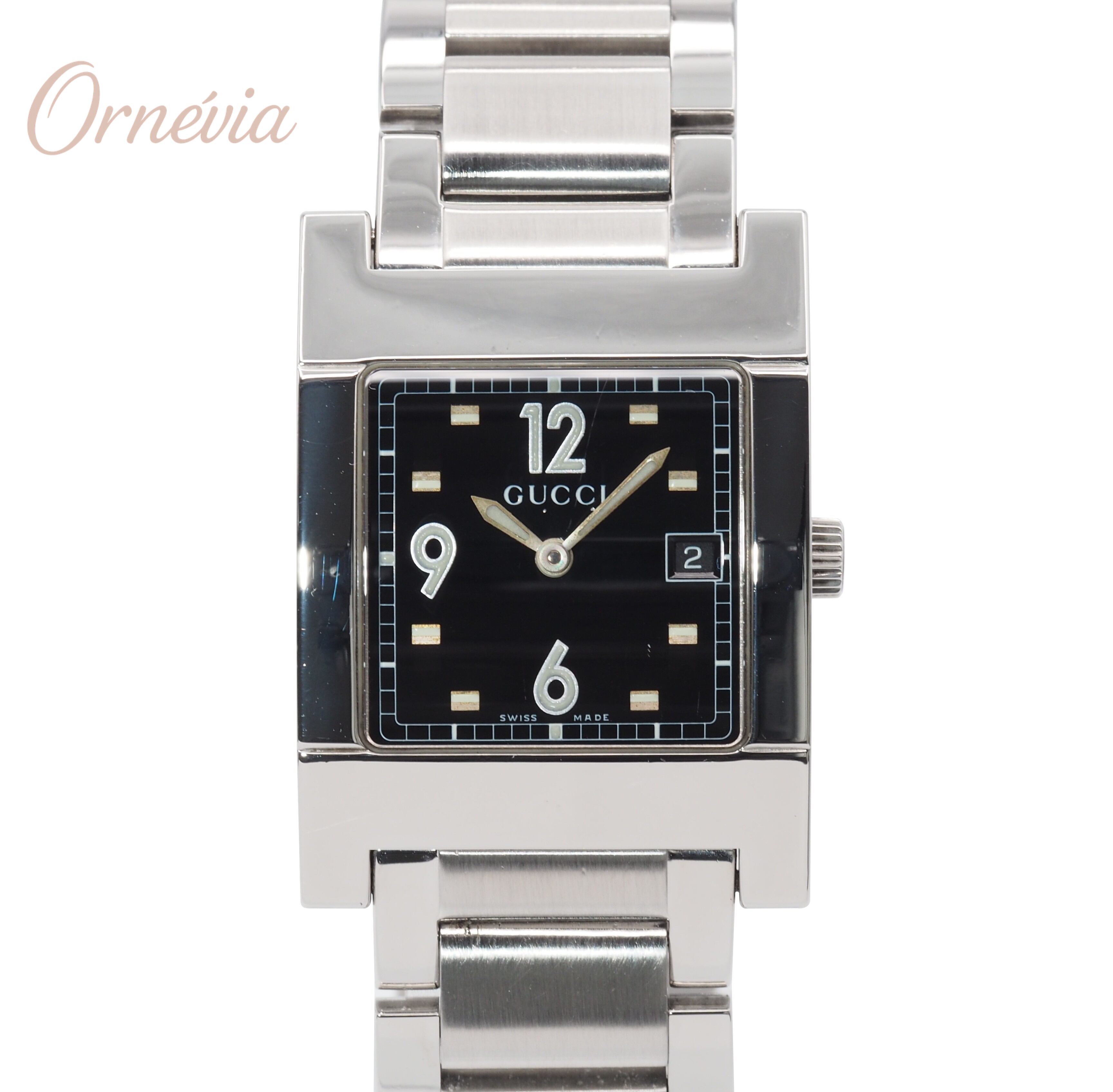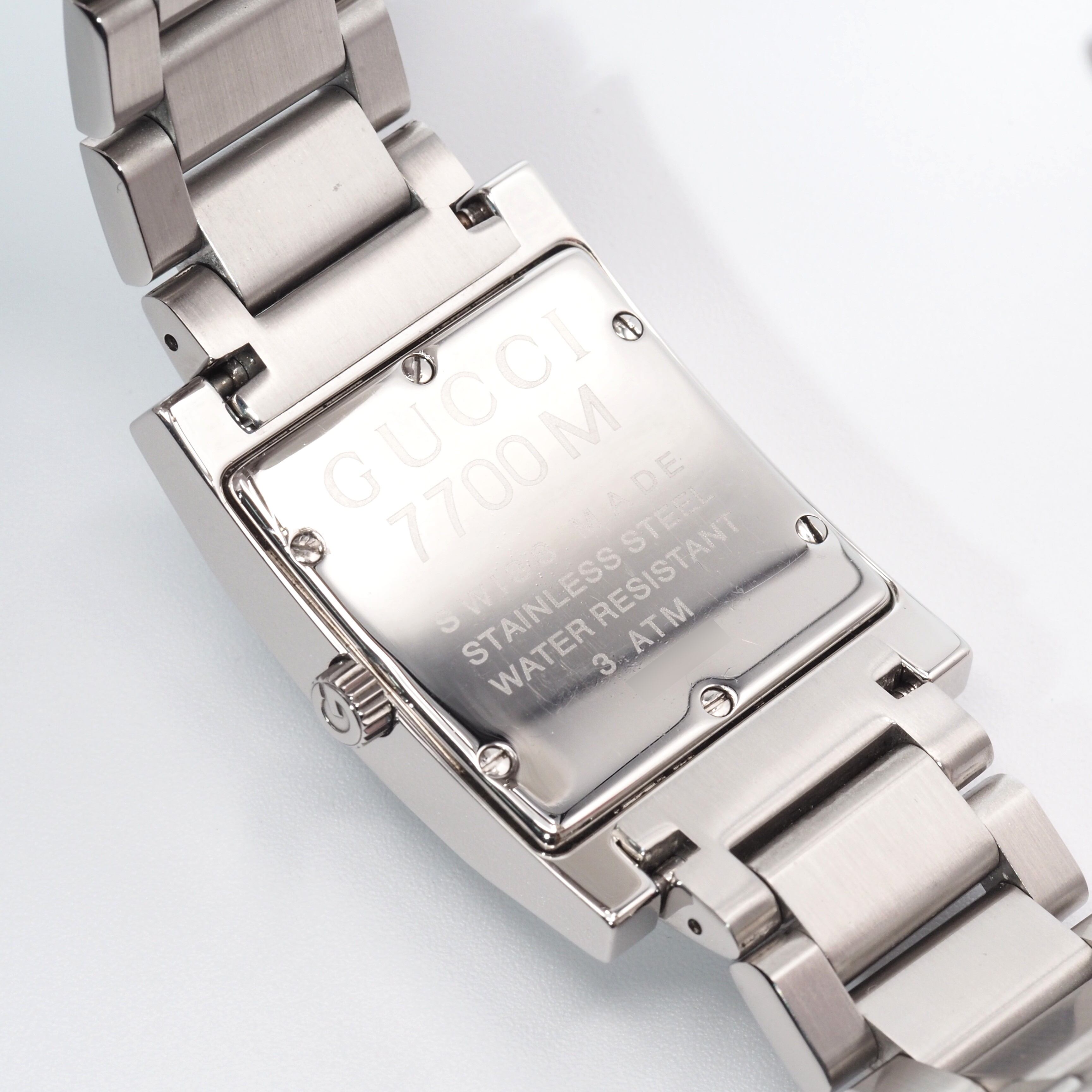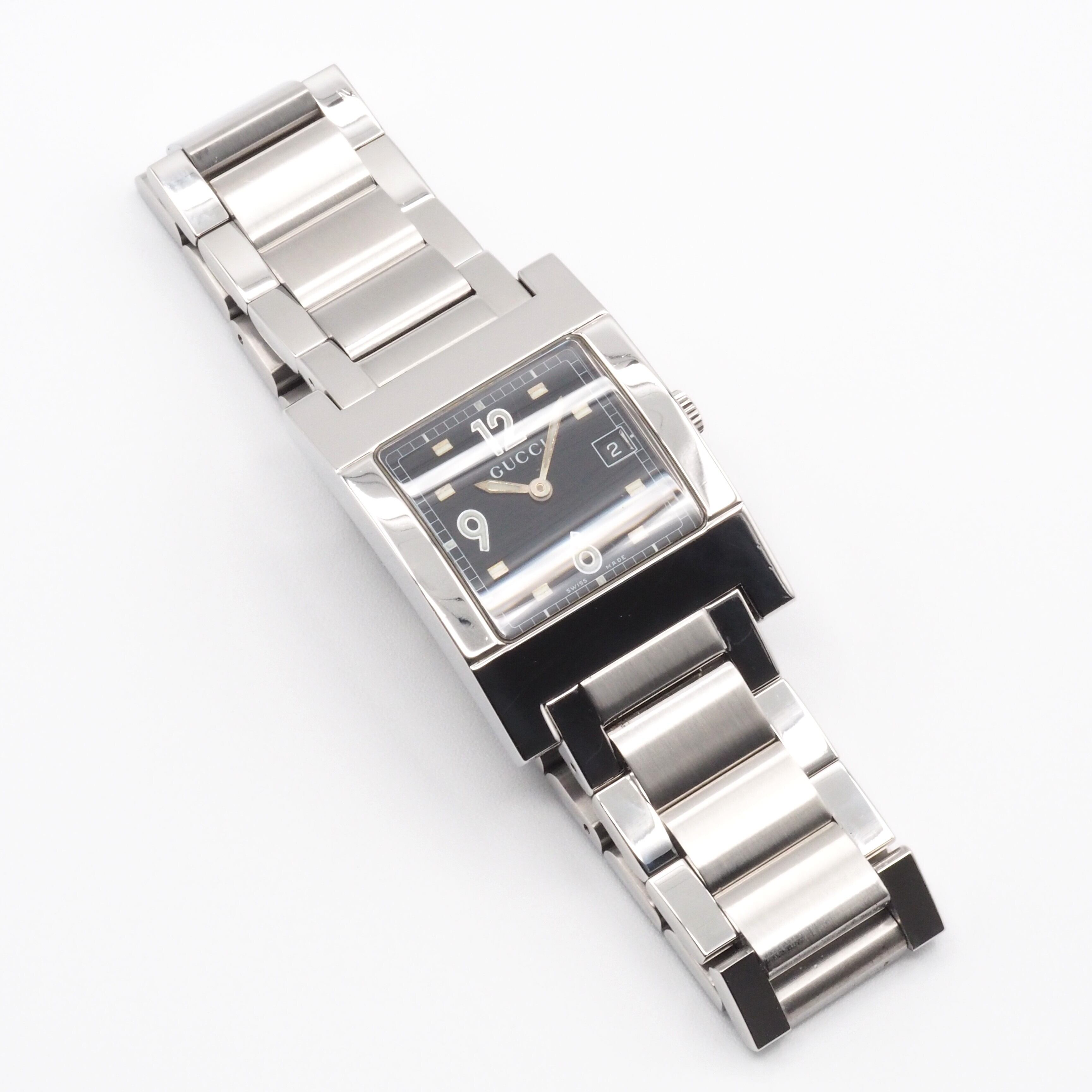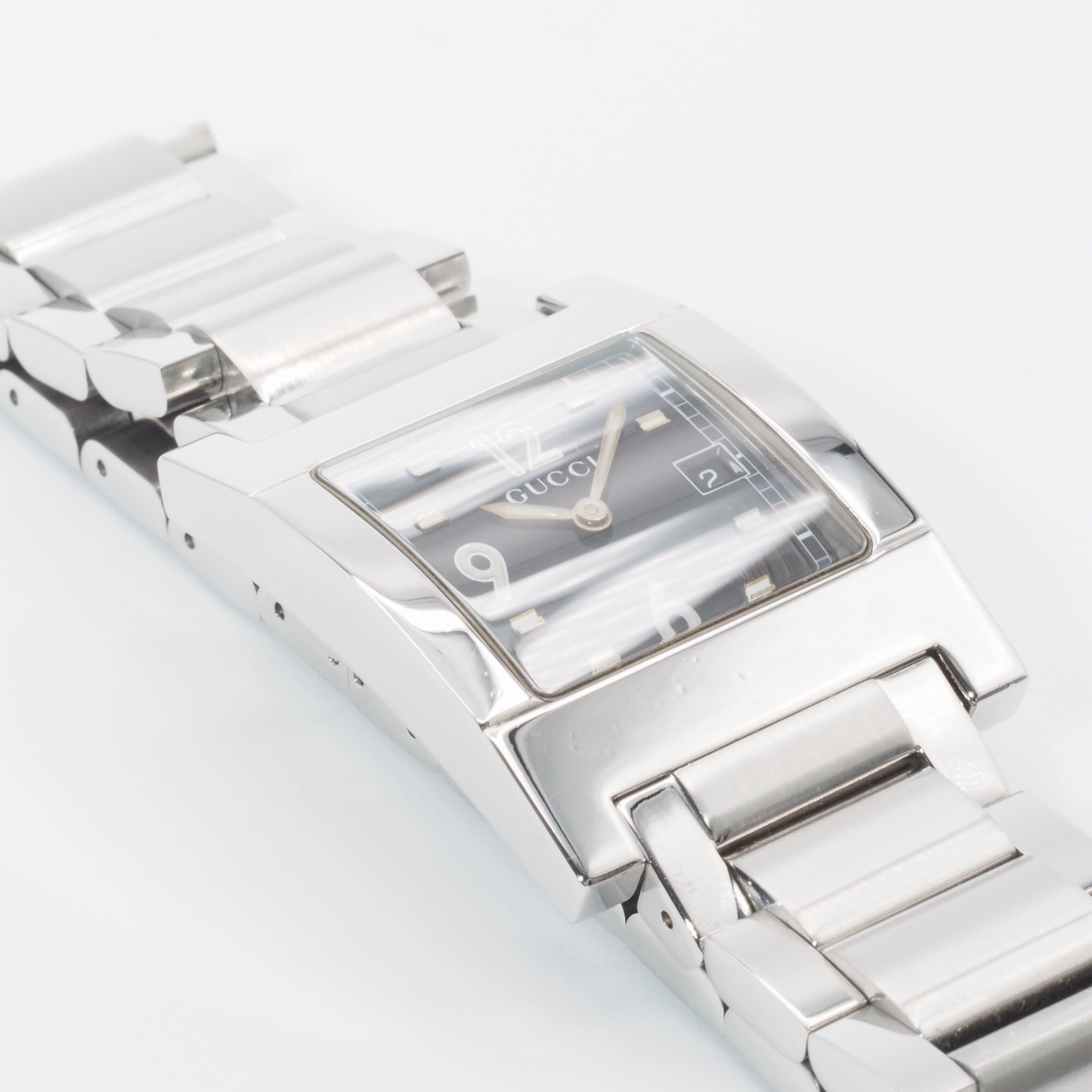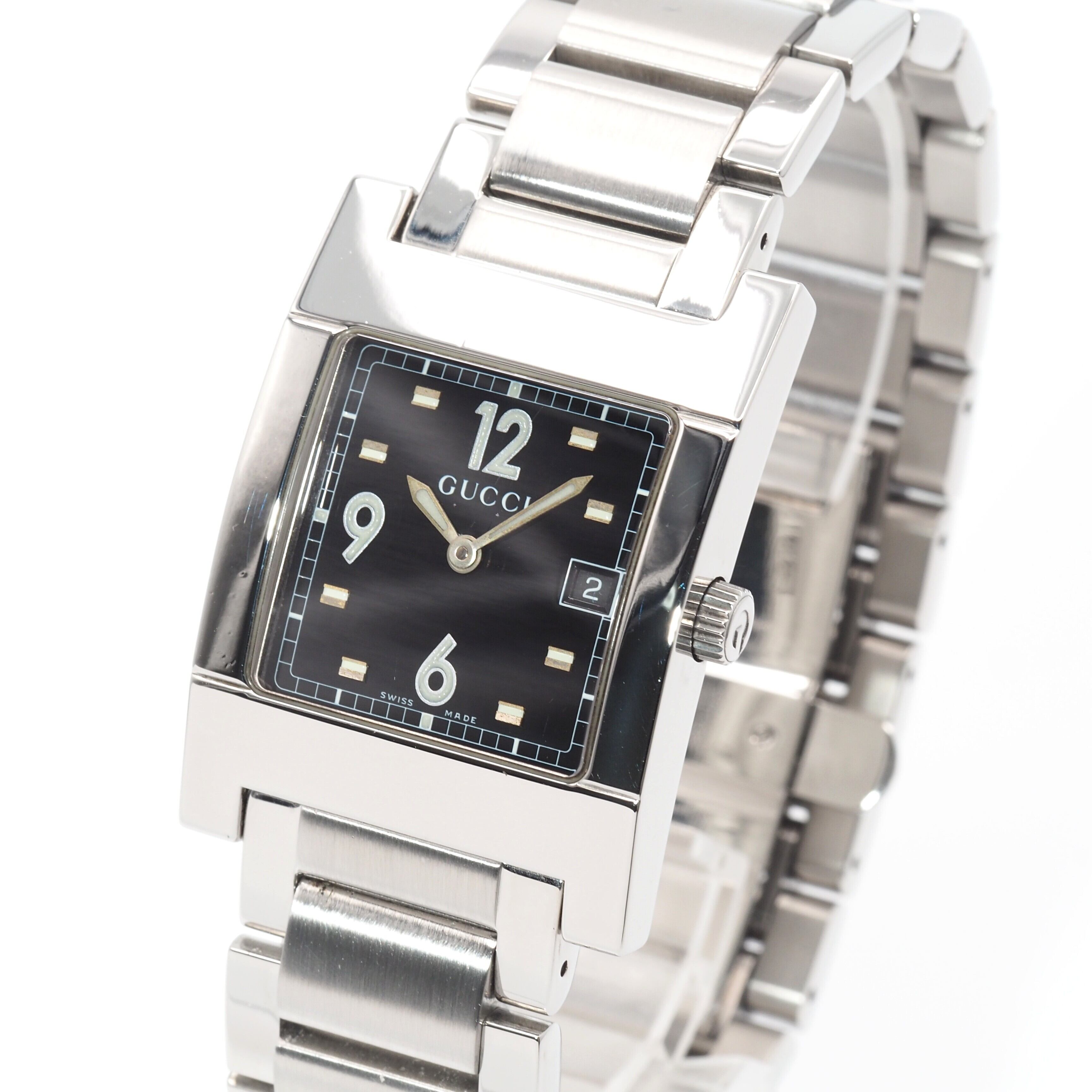 GUCCI グッチ スクエア デイト 7700M ブラック SS クォーツ メンズ ウォッチ 腕時計