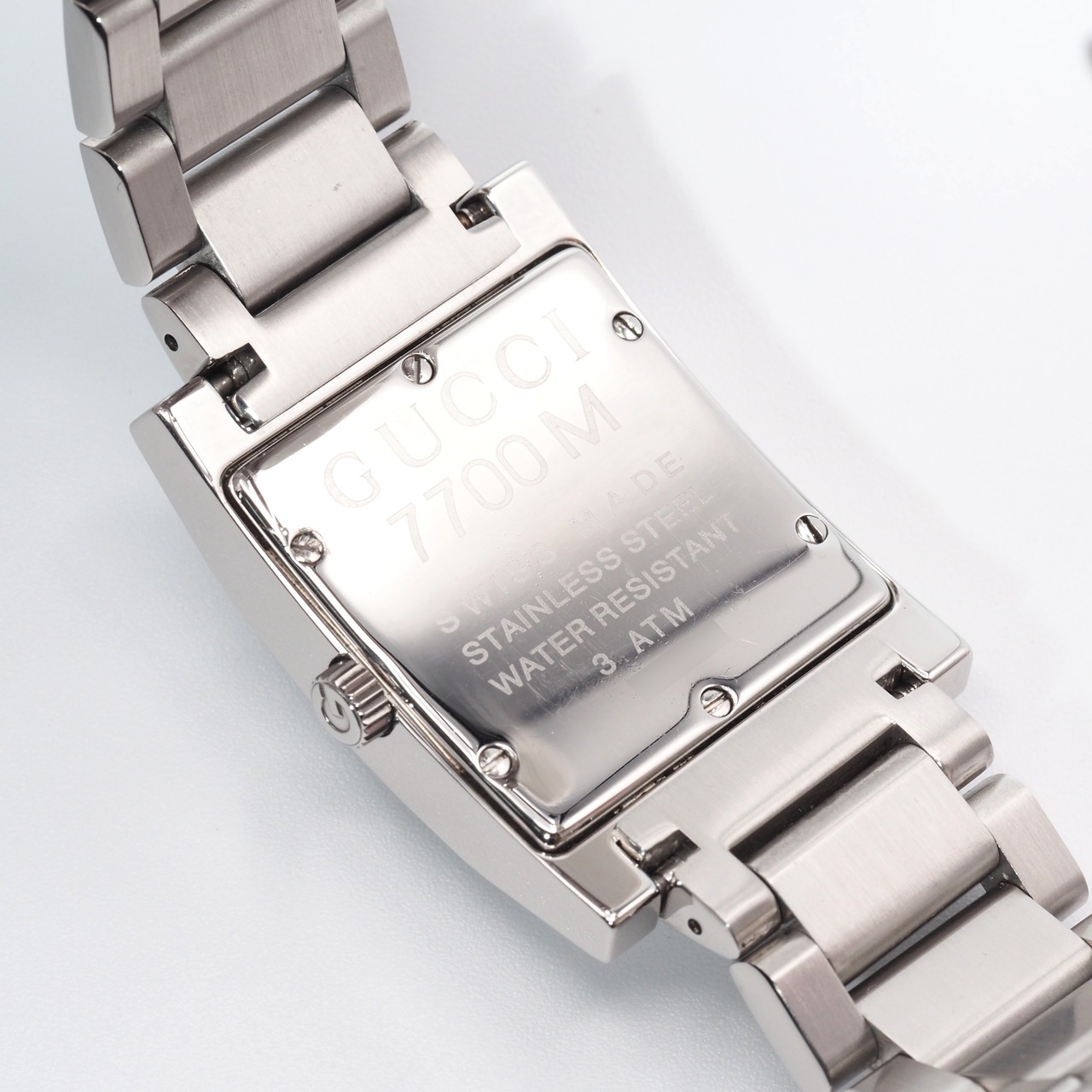 グッチ 7700Mは、洗練されたデザインと実用性を兼ね備えた上品な腕時計です。シンプルで無駄のない文字盤は視認性が高く、ビジネスシーンからカジュアルな装いまで幅広く活躍します。程よいサイズ感で手元にしっくり馴染み、長時間の着用でも快適です。